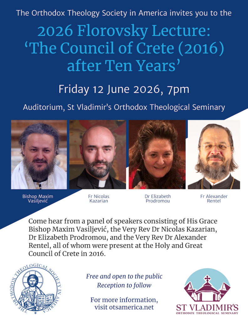 The 2026 OTSA Conference on the theme of “The Council of Crete (2016) after Ten Years,” will be held June 11-13, 2026 at St Vladimir’s Orthodox Seminary.
